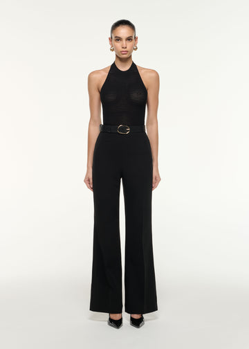 High waisted wide leg heavy cady trousers with stretch in black. Featuring seam crease details on the front and back of the garment and a concealed zip fastening at the side.