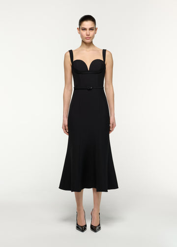 Belted Fit And Flare Midi Dress