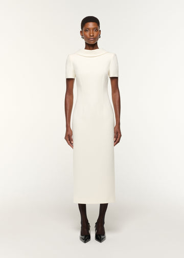 Collared Crepe Column Midi Dress
