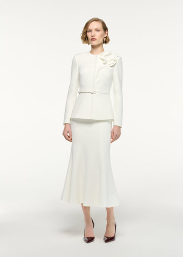 Fitted and flared, a dynamic hem transforms this lightweight crepe skirt into a stylish staple. The sculpted cut hugs the hips and flows elegantly for modern ease. Pair with our tailored jacket for a stylish ensemble.